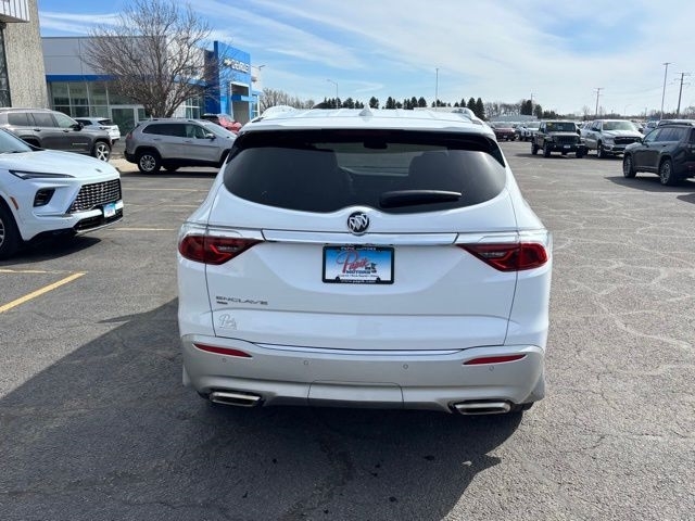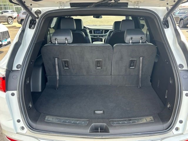 5000lbs Trailering Package (Heavy-Duty Cooling System, Hitch Guidance, and Hitch Guidance w/Hitch View), Front Mounting License Plate Bracket Package, Preferred Equipment Group 1SL (Front & Rear Park Assist and Heated Steering Wheel), AWD, 18`` Aluminum Wheels, 3.49 Axle Ratio, 3rd row seats: split-bench, 4-Wheel Disc Brakes, 6 Speakers, 6-Speaker Audio System Feature, 6-Way Power Front Passenger Seat Adjuster, 7-Passenger Seating, 8-Way Power Driver Seat Adjuster, ABS brakes, Air Conditioning, Alloy wheels, AM/FM radio: SiriusXM with 360L, Auto High-beam Headlights, Auto-dimming door mirrors, Auto-dimming Rear-View mirror, Automatic temperature control, Brake assist, Bumpers: body-color, Compass, Delay-off headlights, Driver door bin, Driver vanity mirror, Dual front impact airbags, Dual front side impact airbags, Electronic Stability Control, Emergency communication system: OnStar and Buick connected services capable, Four wheel independent suspension, Front anti-roll bar, Front Bucket Seats, Front Center Armrest, Front dual zone A/C, Front reading lights, Fully automatic headlights, Garage door transmitter, Heated door mirrors, Heated Driver & Front Passenger Seats, Heated front seats, Heated steering wheel, Illuminated entry, Leather steering wheel, Low tire pressure warning, Not Equipped w/Front & Rear Park Assist, Occupant sensing airbag, Outside temperature display, Overhead airbag, Overhead console, Panic alarm, Passenger door bin, Passenger vanity mirror, Perforated Leather-Appointed Seat Trim, Power door mirrors, Power Driver Lumbar Control Seat Adjuster, Power driver seat, Power Liftgate, Power Passenger Lumbar Control Seat Adjuster, Power passenger seat, Power steering, Power windows, Premium audio system: Buick Infotainment System, Radio data system, Radio: Buick Infotainment System AM/FM Stereo, Rear air conditioning, Rear anti-roll bar, Rear reading lights, Rear window defroster, Rear window wiper, Remote keyless entry, Roof rack: rails only, Security system, SiriusXM w/360L, Speed control, Speed-sensing steering, Spoiler, Steering wheel mounted audio controls, Tachometer, Telescoping steering wheel, Tilt steering wheel, Traction control, Trip computer, Turn signal indicator mirrors, Variably intermittent wipers, Voltmeter, and Wireless Apple CarPlay/Wireless Android Auto.