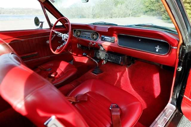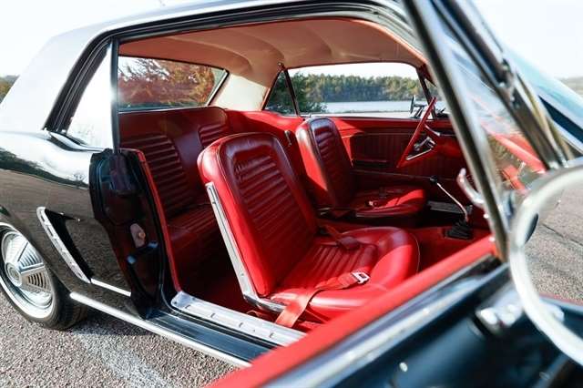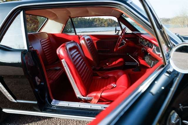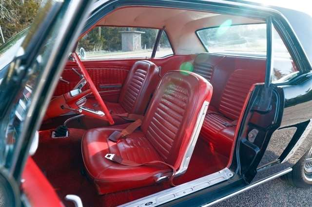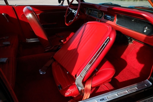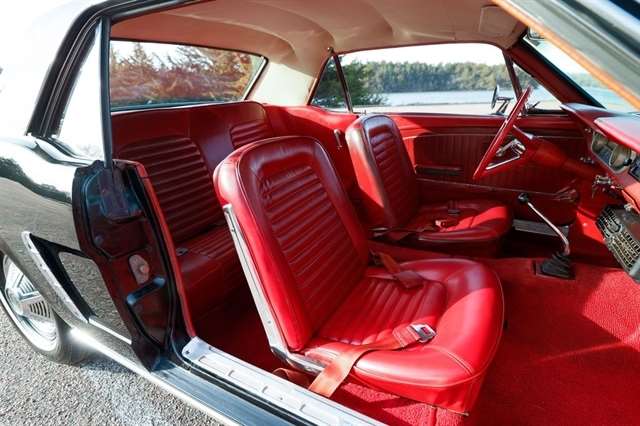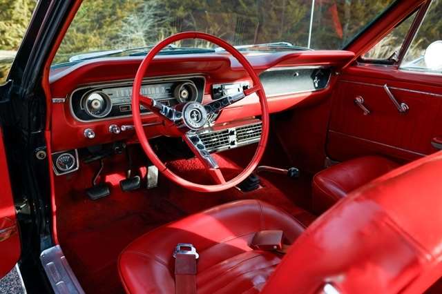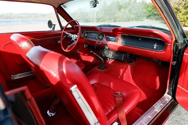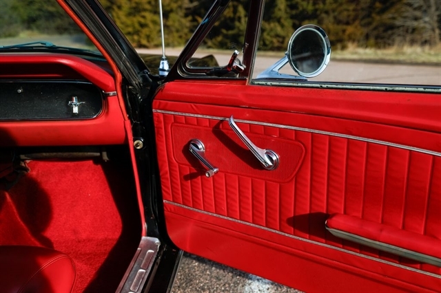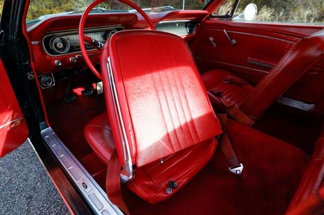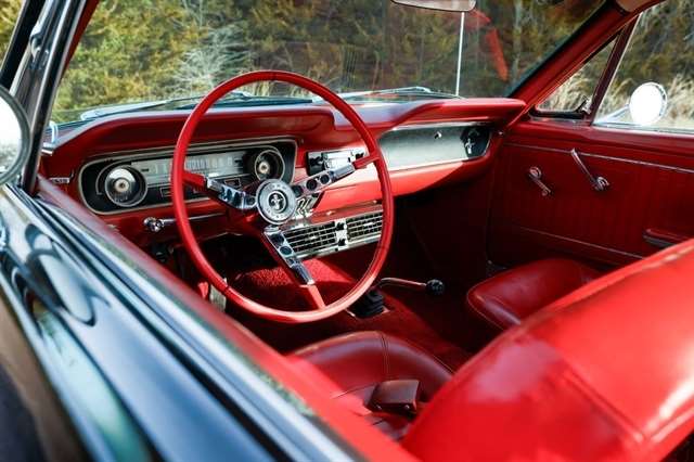 The exterior presents with classic Mustang styling cues that made this car a legend long hood, short deck, and unmistakable body lines that still turn heads nearly 60 years later. Inside, the red vinyl interior provides a bold contrast and captures the spirit of 1960s American design.