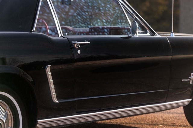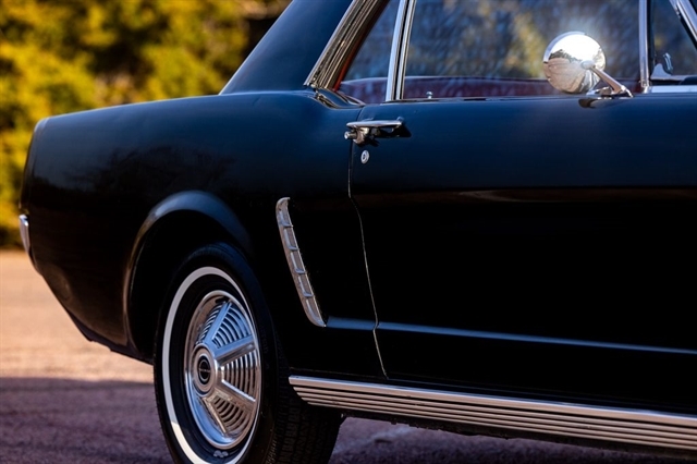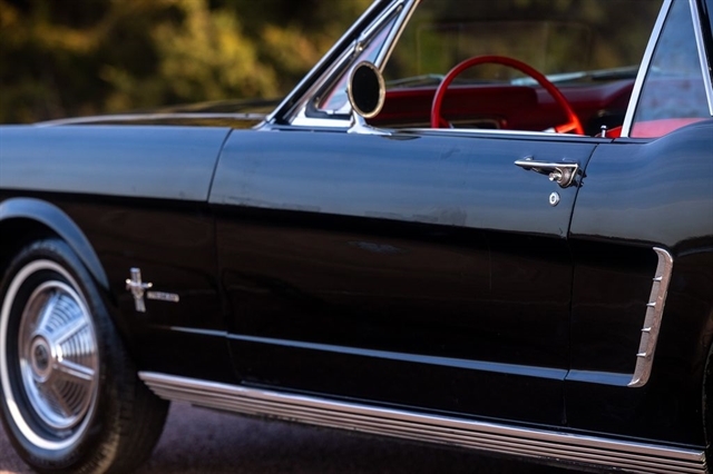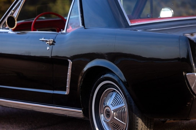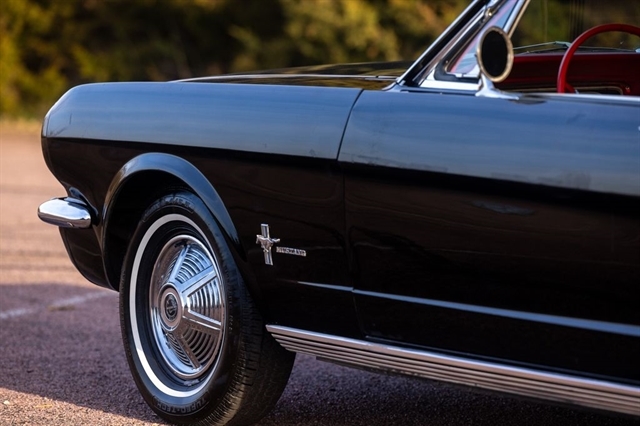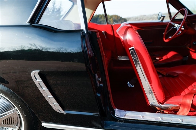 Step into the car that defined an era with this 1965 Ford Mustang Coupe, a true American classic finished in a striking Black exterior over a Red vinyl interior. With just 77,673 miles showing, this Mustang represents an increasingly hard-to-find opportunity to own an early production example of Fords most iconic nameplate.