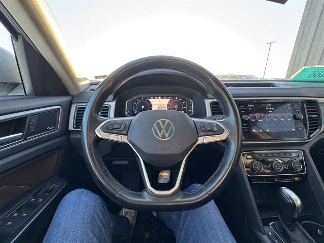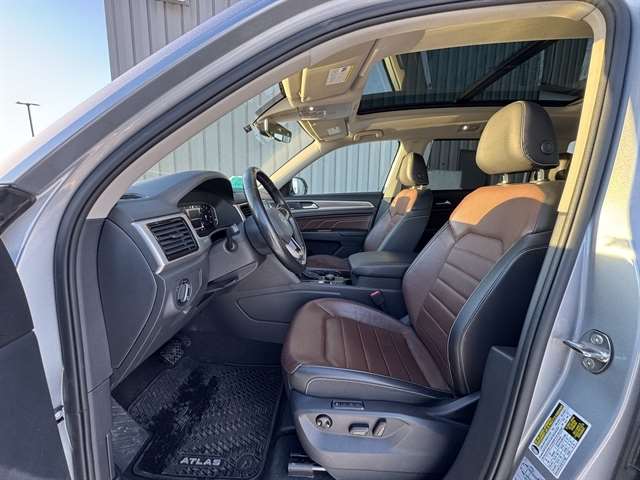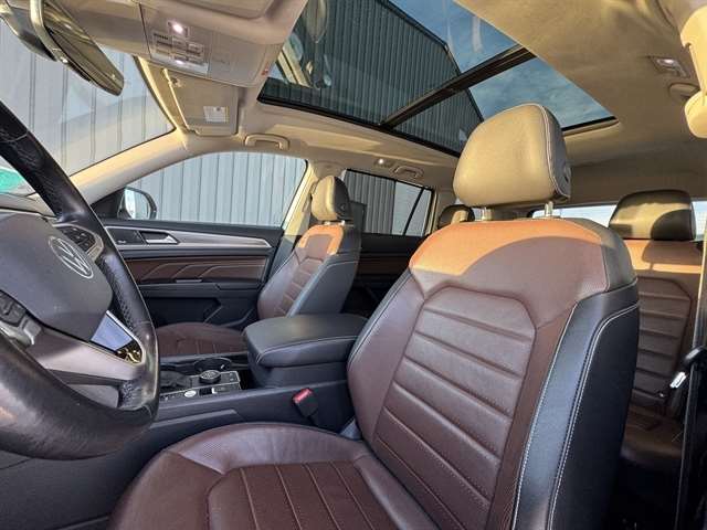 **NAVIGATION**, **LOCAL TRADE IN**, **LEATHER**, **MOONROOF**, BLUETOOTH, ALL BOOKS AND KEYS, **REMOTE START**, **Back-Up Camera**, **POWER LIFTGATE**, **ADAPTIVE CRUISE CONTROL**, **HEATED/COOLED SEATS**, **HEATED SEATS & STEERING WHEEL**, **APPLE CARPLAY/ ANDROID AUTO**, **FENDER PREMIUM SOUND SYSTEM**, Atlas SEL Premium, 4D Sport Utility, 3.6L V6, AWD, Pyrite Silver Metallic, Mauro Brown w/Perforated V-Tex Leatherette Seating Surfaces, 12 Speakers, 3rd row seats: split-bench, 4-Wheel Disc Brakes, ABS brakes, Active Blind Spot Monitor, Active Cruise Control, Air Conditioning, AM/FM radio: SiriusXM, Auto High-beam Headlights, Automatic temperature control, Brake assist, Compass, Electronic Stability Control, Four wheel independent suspension, Front dual zone A/C, Front fog lights, Fully automatic headlights, Heated door mirrors, Heated front seats, Heated rear seats, Heated steering wheel, Htd/Actively Ventilated Comfort Front Sport Seats, Memory seat, Navigation System, Outside temperature display, Panic alarm, Perforated Vienna Leather Seating Surfaces, Power door mirrors, Power driver seat, Power Liftgate, Power moonroof, Power passenger seat, Radio: MIB3 Discover Media w/8`` Touchscreen Navigation, Rain sensing wipers, Rear air conditioning, Remote keyless entry, Security system, Speed-sensing steering, Split folding rear seat, Standard Suspension, Steering wheel mounted audio controls, Traction control, Ventilated front seats, Wheels: 20`` 5-Spoke 2-Tone Machined Alloy.